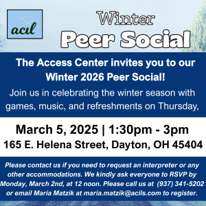 ๐โ๏ธ Exciting News! The Access Center is hosting our Winter 2026 Peer Social, and you’re invited! Join us for an afternoon of fun, games, music, and refreshments.