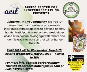 Access Center for Independent Living is excited to kick off Living Well In The Community (LWIC) β a FREE 10-week health and wellness program designed for individuals with disabilities who want to build healthy habits, set personal goals, and connect with others in a supportive space.